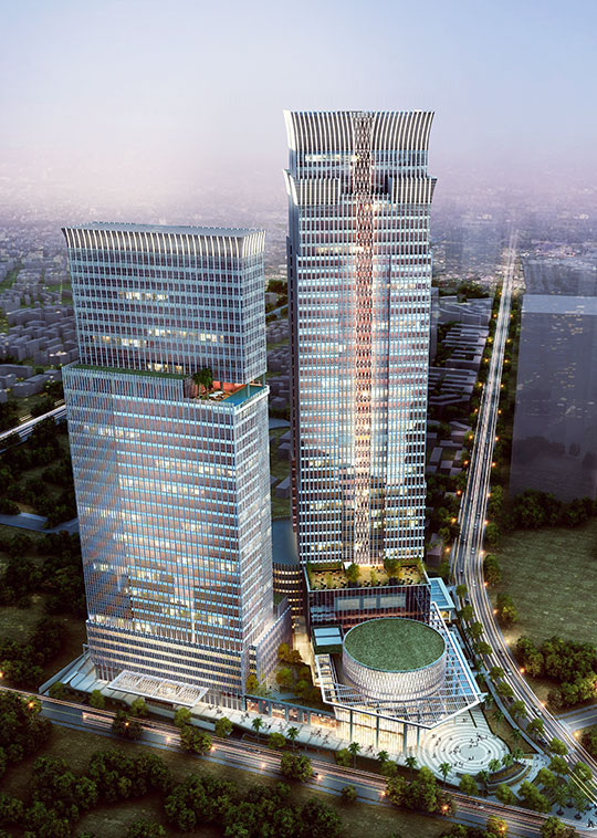 The iconic high-rise towers are reflecting its environmentally friendly, features through contemporary yet luxurious facade